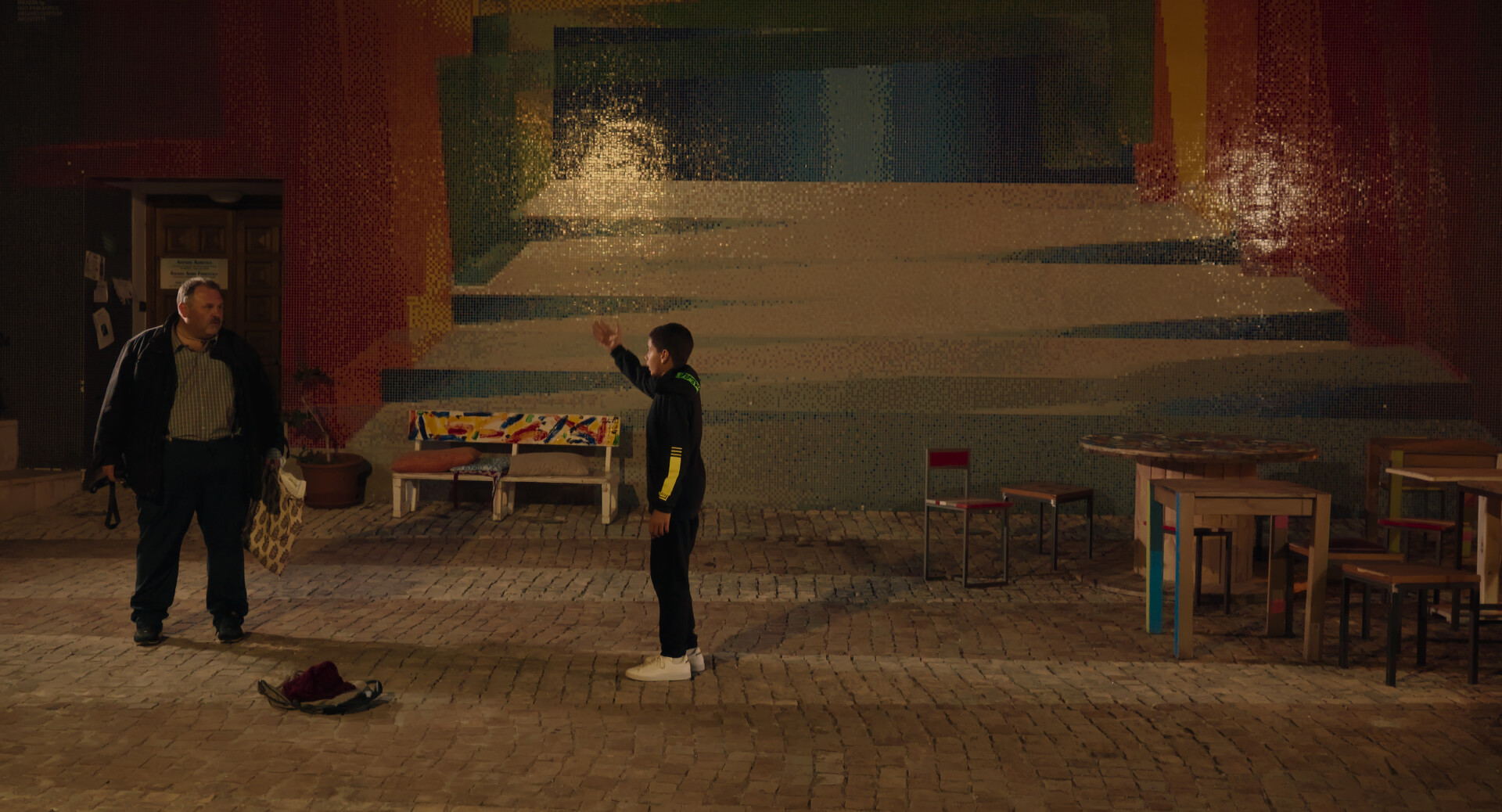 The young aspiring break dancer Marco and the toy merchant Domenico meet one night in a little town in the South of Italy during the pandemic. Marco has been waiting for his mother for hours, Domenico proposes him to look for her together.